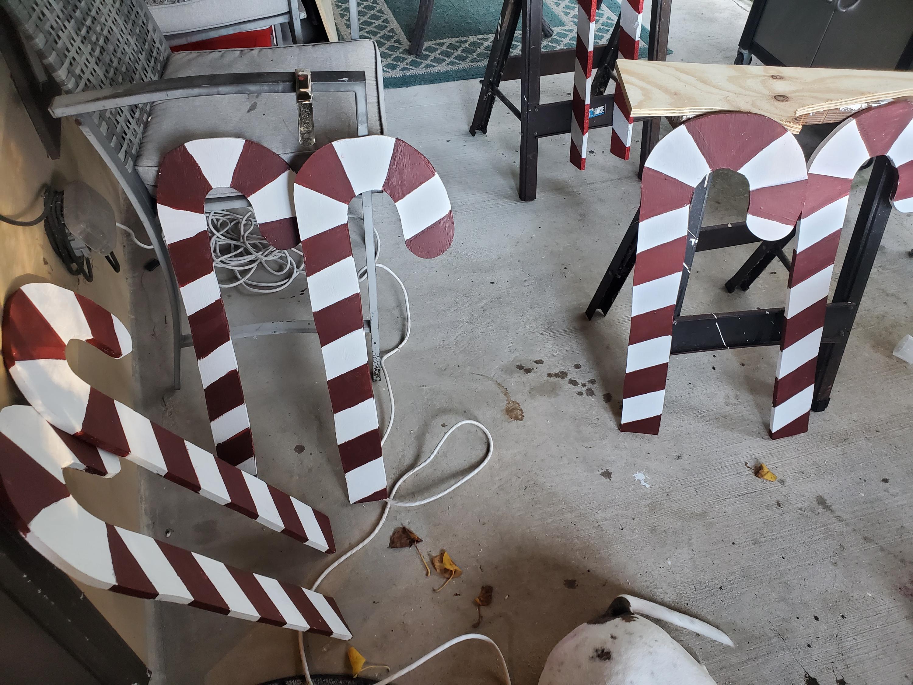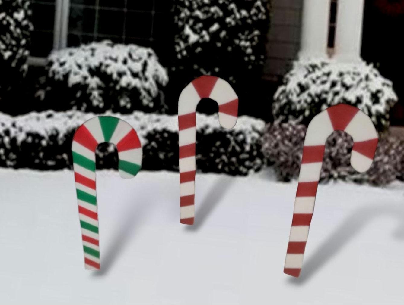 These large fully painted wooden yard candy cane decorations are perfect for any yard this holiday season.