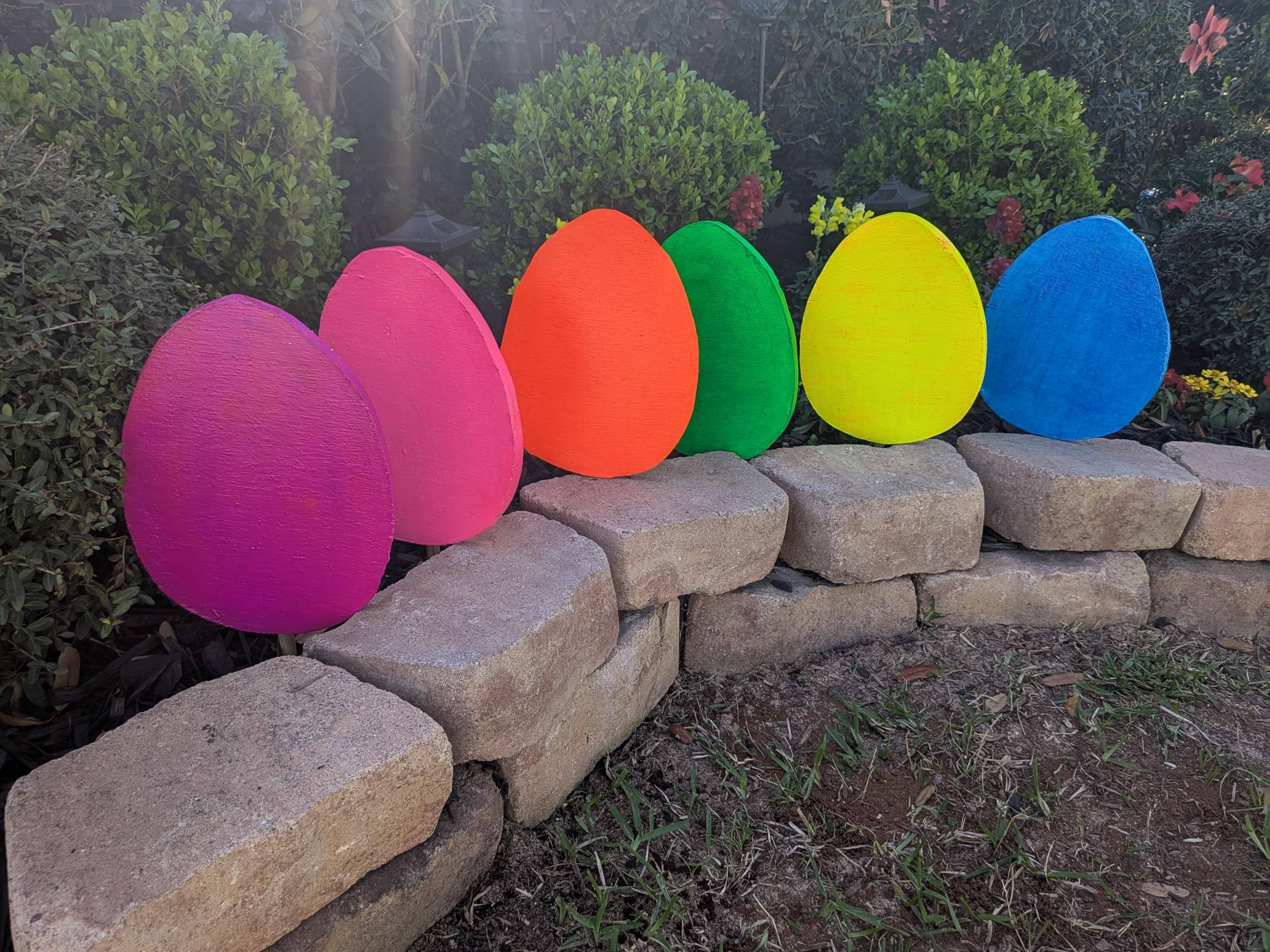 These bright neon colored Wooden Easter egg yard decorations are perfect for any yard big or small. They will add the perfect Easter touch to any yard or display.
