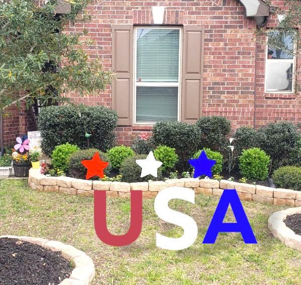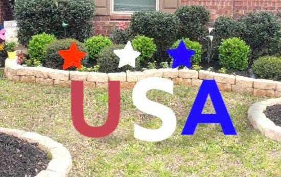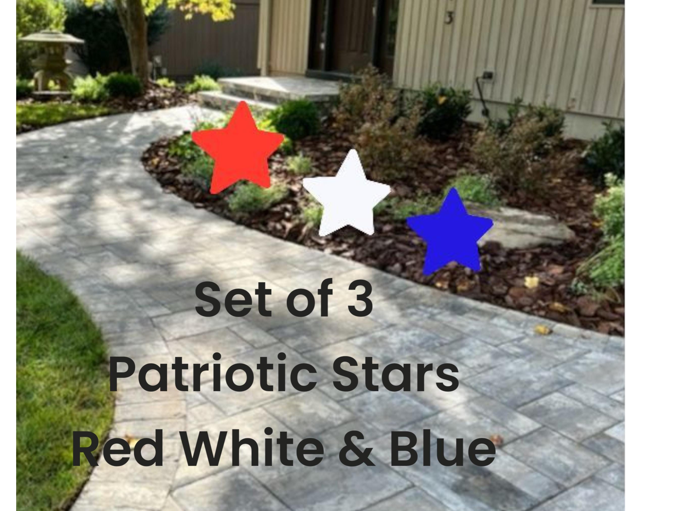 SET OF 3 YARD STARS. 12 INCHES TALL RED WHITE AND BLUE