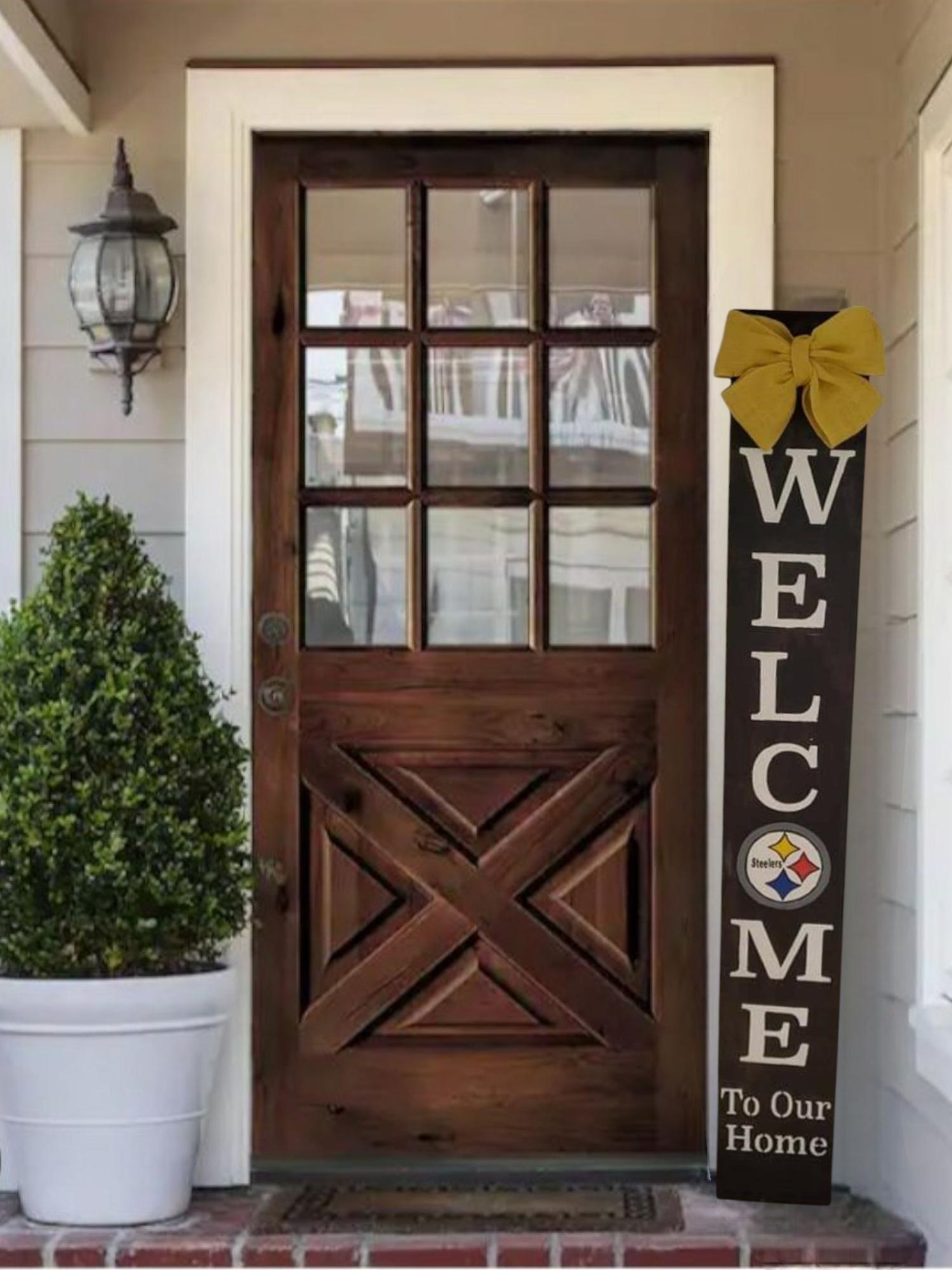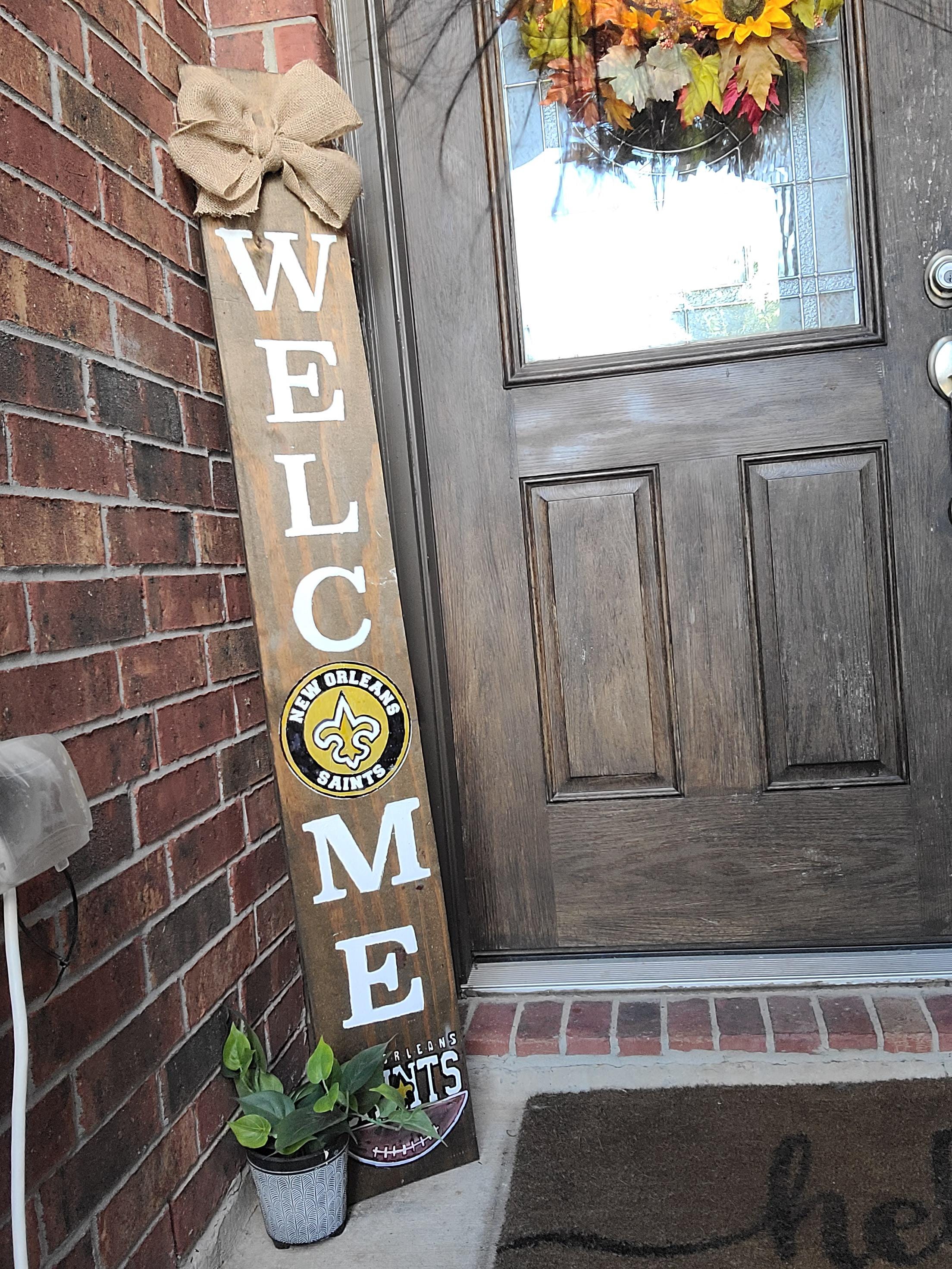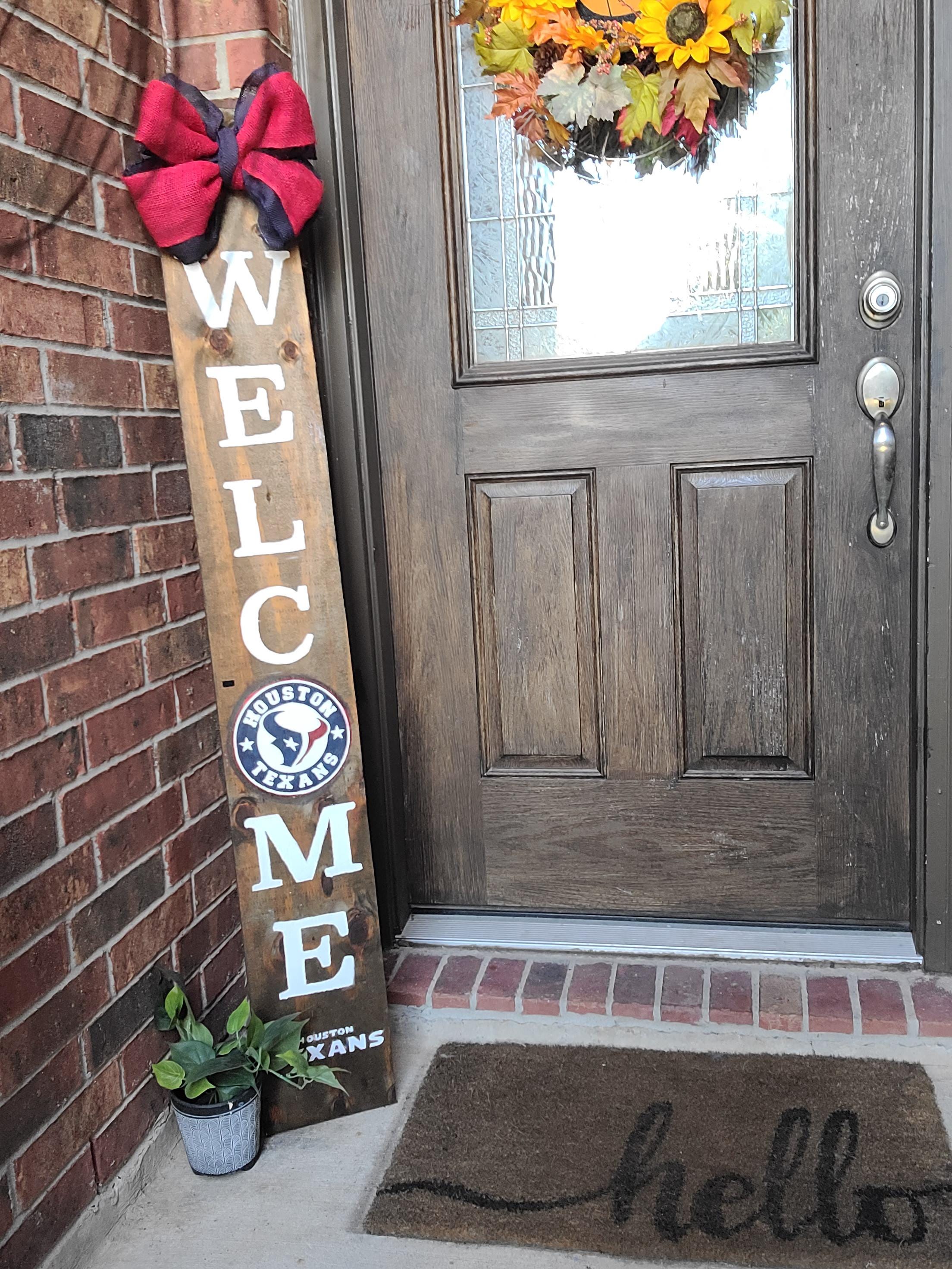 This Footballs Team Inspired Welcome Porch sign with Burlap Bow is the perfect addition to any porch. It comes in multiple teams and is always weatherproofed and sealed. This Heavy Duty Sign is a great way to greet guest or give as a housewarming present.
