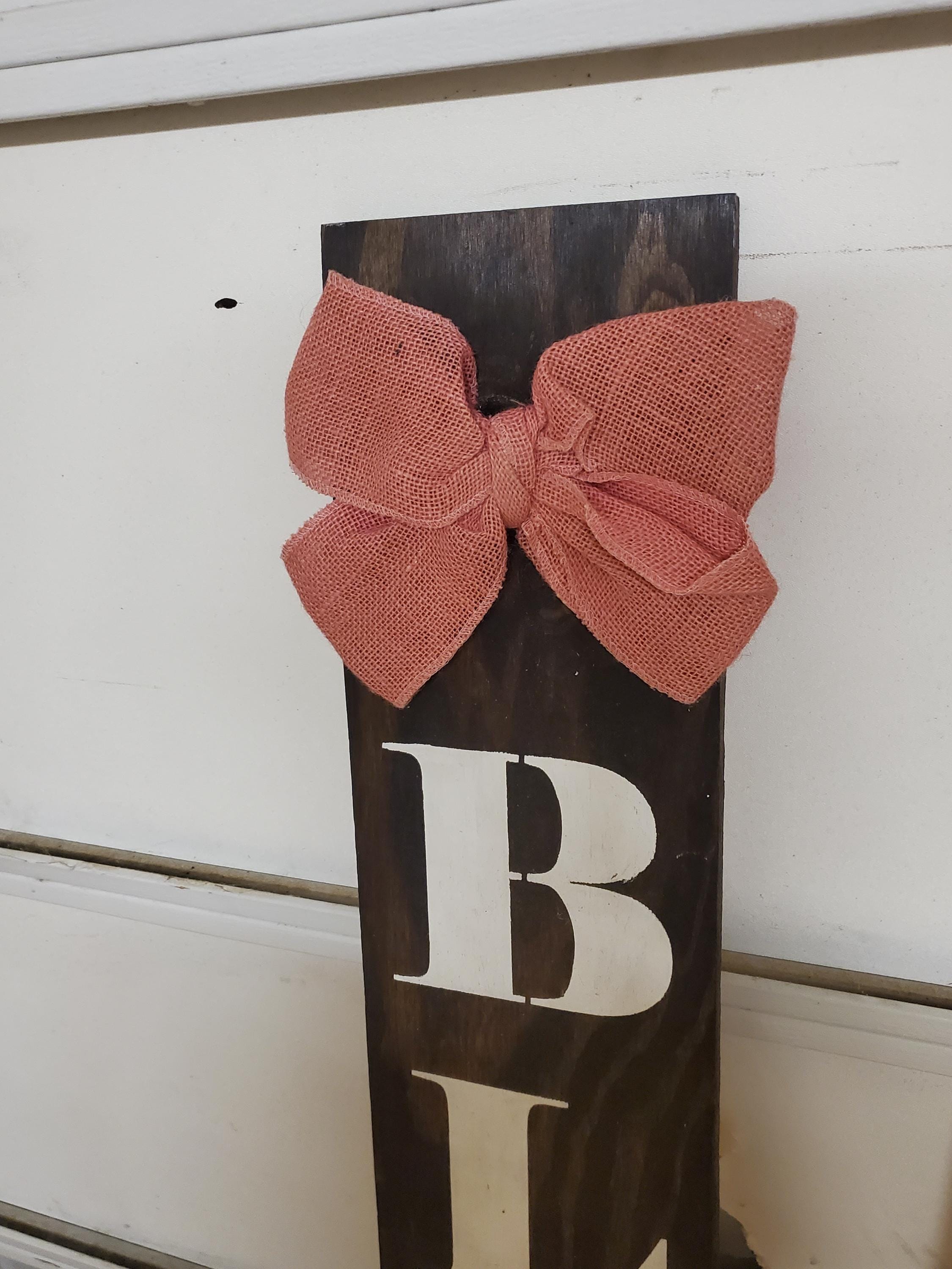 This Beautiful Porch sign is the perfect addition to any Texas Porch during season or all year round. IT also makes the perfect housewarming gift. The saying Bless Our Home and All Who Enter is beautifully handpainted down length of sign and then topped with a large Organic Jute Burlap Bow that has been stiffened and secured to maintain its poise and welcome guests.