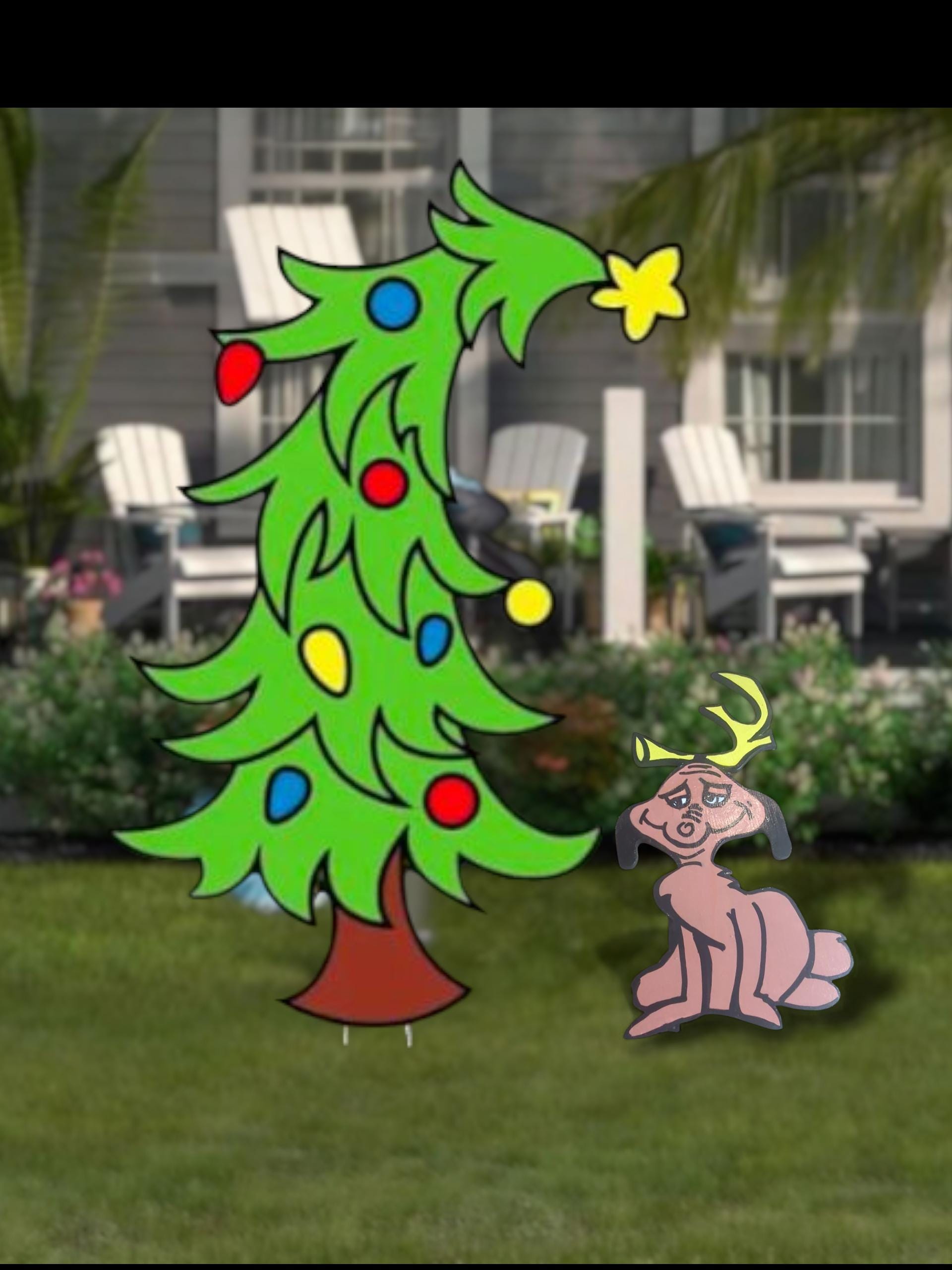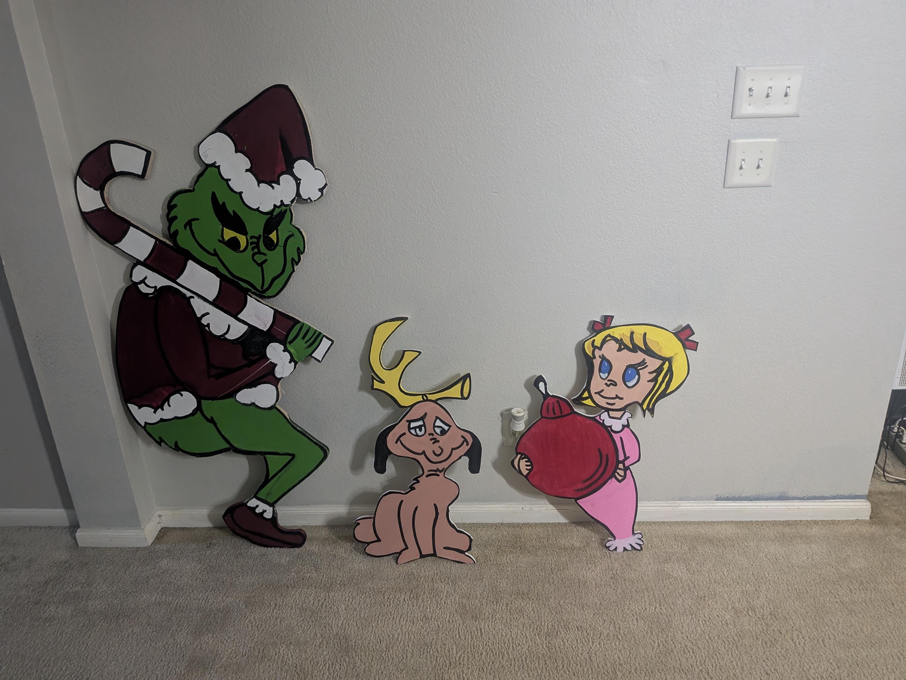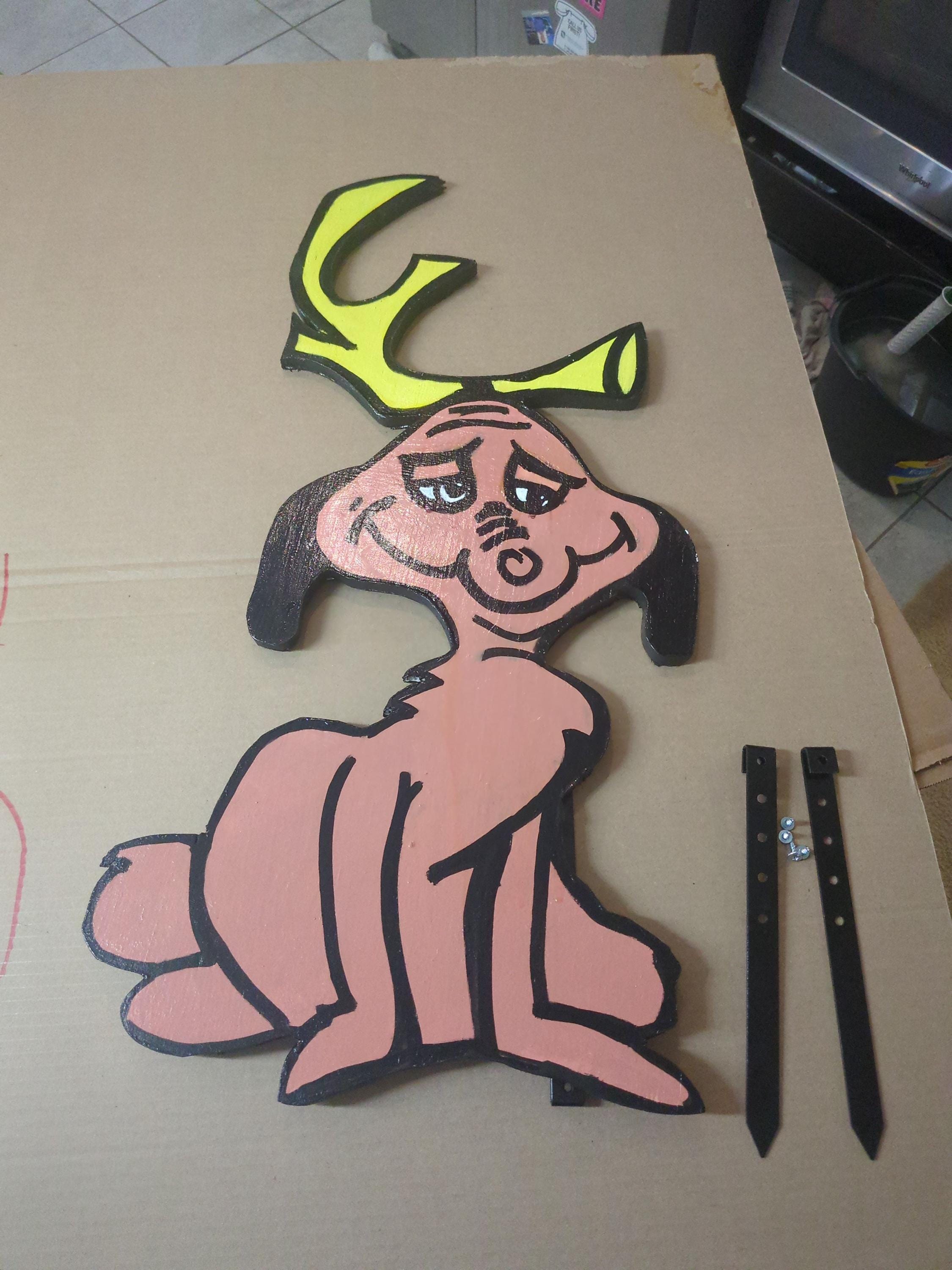 This Grinch Sitting Max is the perfect addition to any Grinch display Christmas display. It is made of solid wood and hand-painted to ensure that it lasts many holiday seasons. It includes posts and hardware