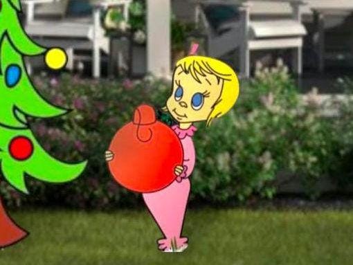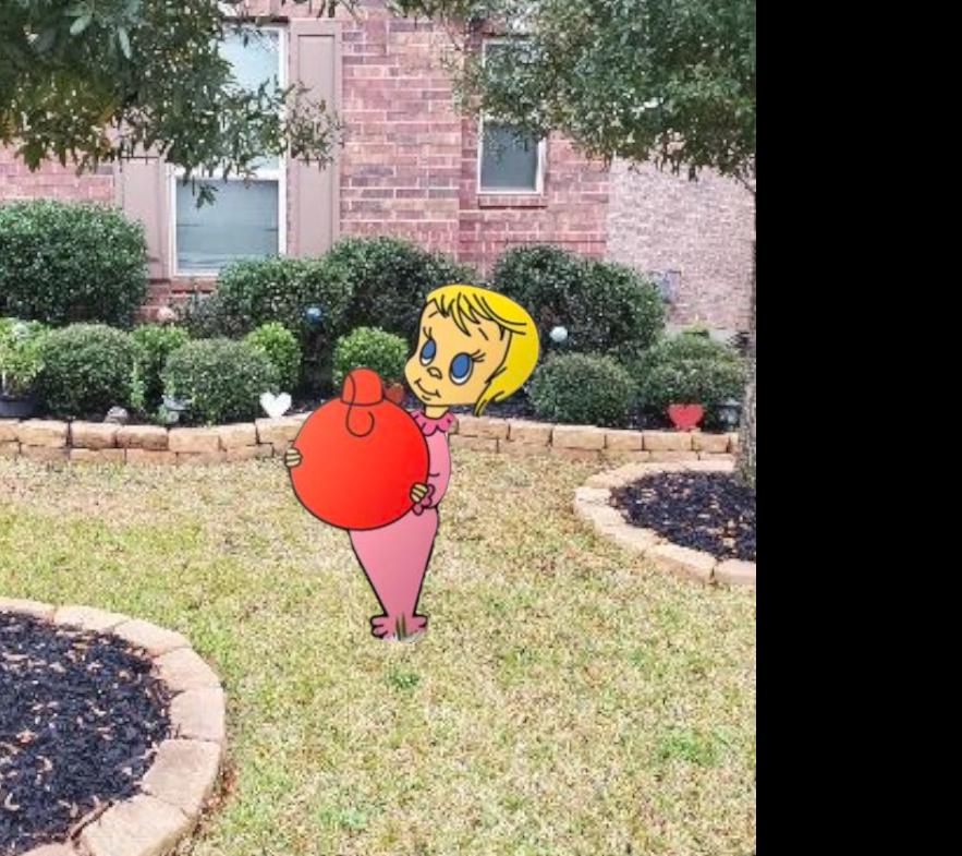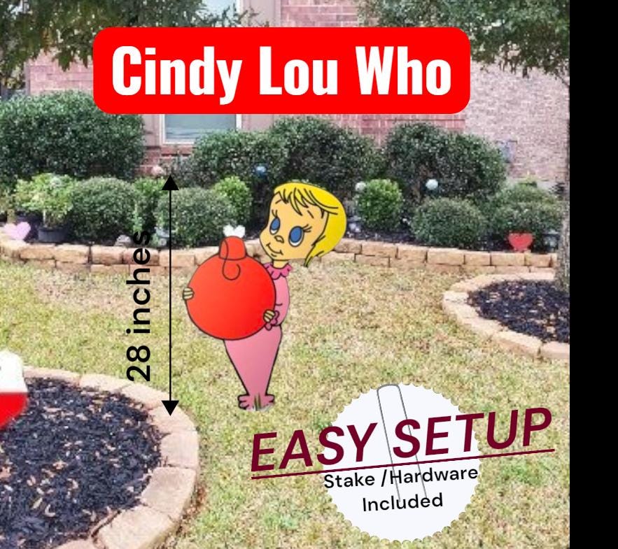 This Grinch Cindy Lou Who with red ornanment is the perfect addition to any Grinch display Christmas display. It is made of solid wood and hand-painted to ensure that it lasts many holiday seasons. It includes posts and hardware set up is a breeze.