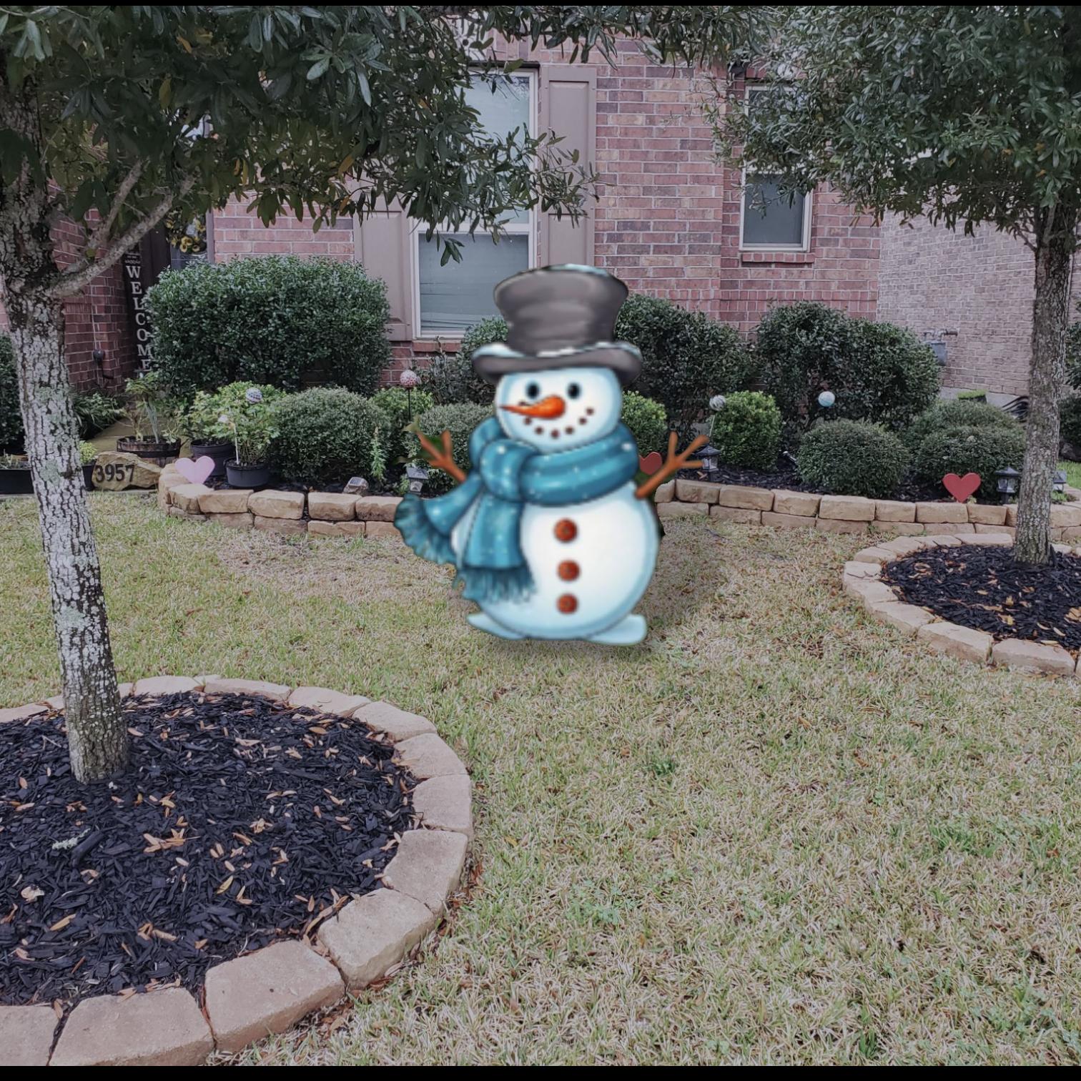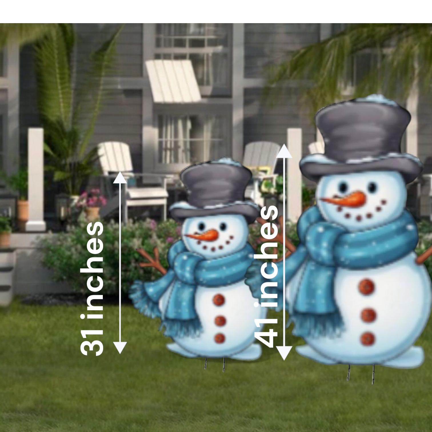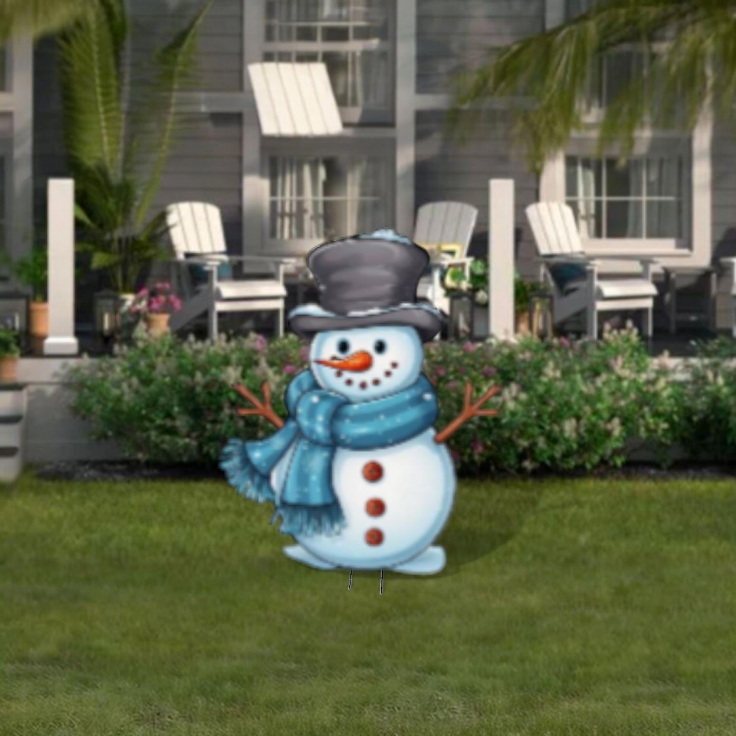 This snowman wooden Christmas decor will bring a smile to everyone's face . It brings tons of cheer and happiness . It is hand cut, hand painted, clear coated and sealed . It will not fade or warp and will last many Christmas seasons. It is heavy and solid making it very durable and hearty. There are two sizes available. Stake and hardware are included and cAn be attached or not attached depending on your preference.