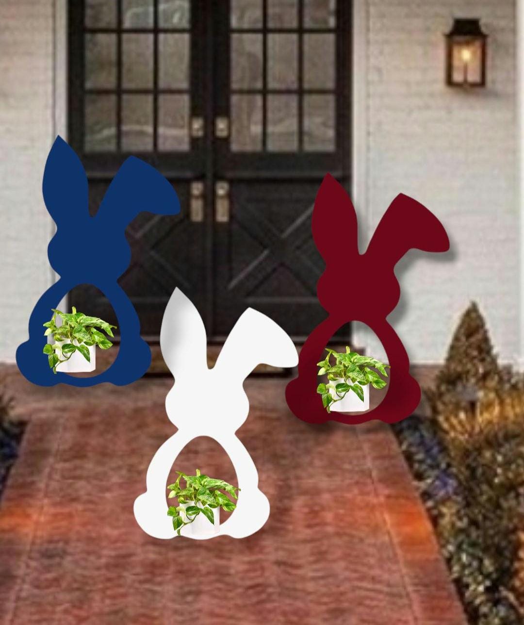 Add a fresh, modern touch to your porch with this Bunny Planter Yard Art Set, designed to celebrate spring and Easter in a clean, eye-catching way. Each long-eared bunny features a built-in planter opening, perfect for showcasing greenery, florals, or seasonal accents.